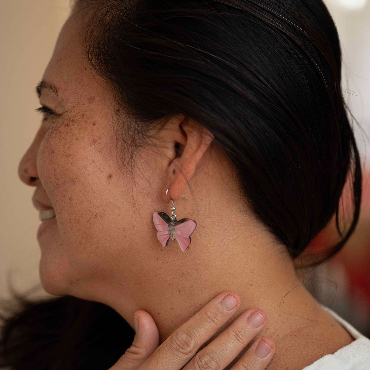 Add a touch of Filipino style and heritage to your wardrobe with our one-of-a-kind butterfly earrings! Each piece is beautifully handcrafted, showcasing an eye-catching blend of colors, textures, and patterns. Made with love and care using ethically sourced local materials, these earrings not only add a pop of style to your outfit but also support Filipino artisans who preserve traditions. Treat yourself to a special accessory that gives back to the community – because, like you, every pair has a story to tell!